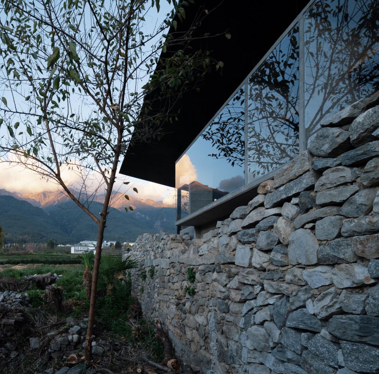 墟岫成园游园体验最终在高台之上废墟花园咖啡里或眺望远山、或回望内院的片刻落下帷幕。一期石屋和北楼孤立的建筑体验,终于在身体的游走、停留、凝视、爬阶、远眺、回望等游园动作中,以及室内与园林相互渗透、相互交织的模糊边界下,被重新编织成一个整体的场所体验。给自己盖房子的过程中,我常想也许建筑师年轻时最难过的关之一就是做个空间把自己安顿舒服了,因为这个过程中建筑师得学会把高高在上的专业视角重新拉回到生活的维度里,用身体去丈量和验证,什么是真正打动自己的。能知道怎么把自己安顿舒服了,推己及人,在做设计的过程中也会有更多的同理心去努力把别人安顿舒服了。“安顿舒服”在云南当地人的说法中就是“好在”,好的建筑不能仅仅成就作品本身,而是要反过来滋养人的。今年年初我打算给新落成的工作室起个正式的名字,思来想去拼凑出“墟岫园”三个字。“墟”是微地形,是场地上最开始打动我的石头废墟,也是新空间格局的起点。“岫”是洞穴般的内部身体体验,是老房子厚重的石头墙带来的空间感受,也是这个“贴身肉搏”的设计里身体与结构、洞口或墙壁发生亲密互动时激发出来的原始触觉感知。“园”是将内外体验编织在一起的空间策略,是身体与自然的多重回响。墟岫园也算是基于自己在大理多年的生活经验,对自然生活方式的一次营造实验。