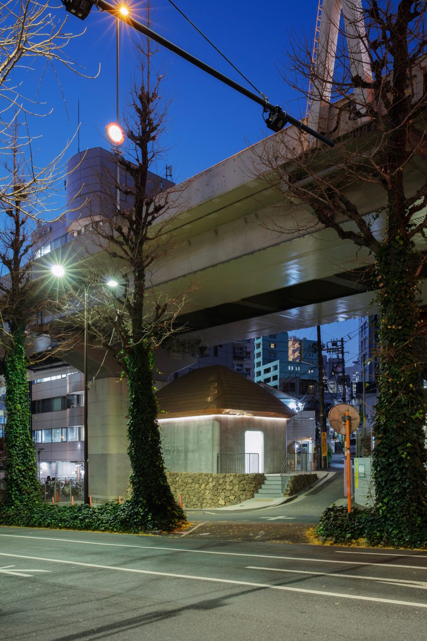 作为东京厕所项目的一部分,工业设计师马克-纽森(Marc Newson)在涩谷(Shibuya)建造了一座公共厕所,顶部为传统形状的铜屋顶。