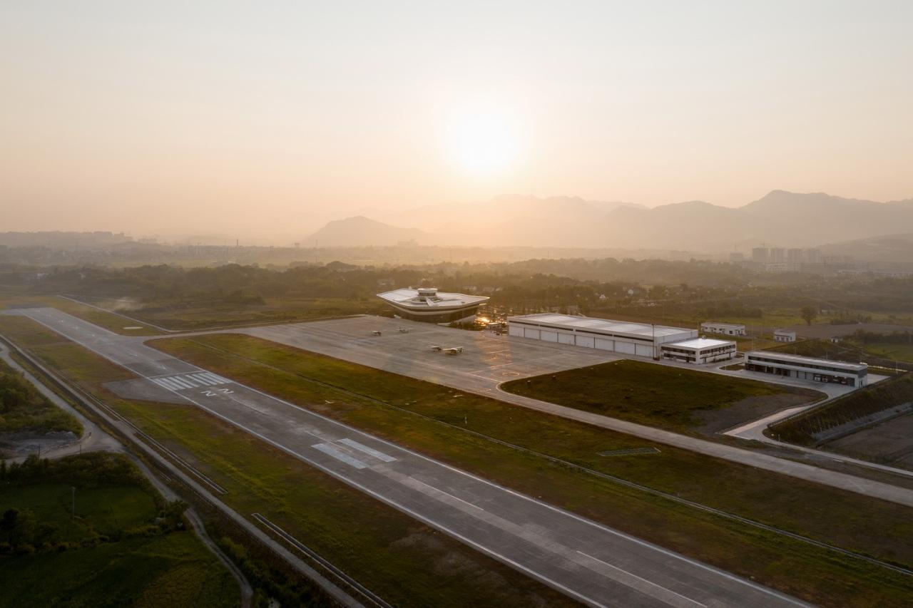 作为杭州亚运会配套工程,坐落在浙江建德航空小镇的千岛湖通用航站楼,肩负了杭州国际化城市门户开放象征和航空小镇深化发展的双重使命。这就呼唤航站楼必须具航空特质、在地属性和区别于普通交通航站楼的特色功能。