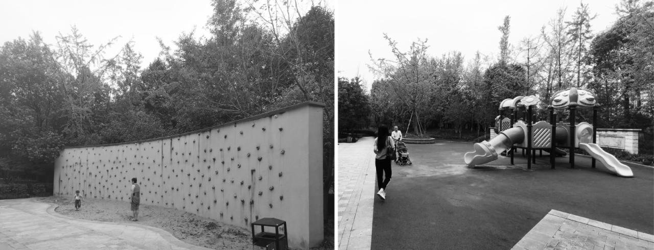 5个C型构架分别有着不同的朝向,面向江面的3片作为滨江书屋和步行者的能量补给站,静对流动不息的江面。面向城市面的2片,结合安澜工程抬标要求所带来的近2米高差变化,形成室内亲子咖啡厅和室外攀爬、滑梯、沙坑等儿童嬉戏场所,“纸鸢竹马伴儿嬉”,大片屋檐的荫蔽为妈妈们提供了休憩空间。