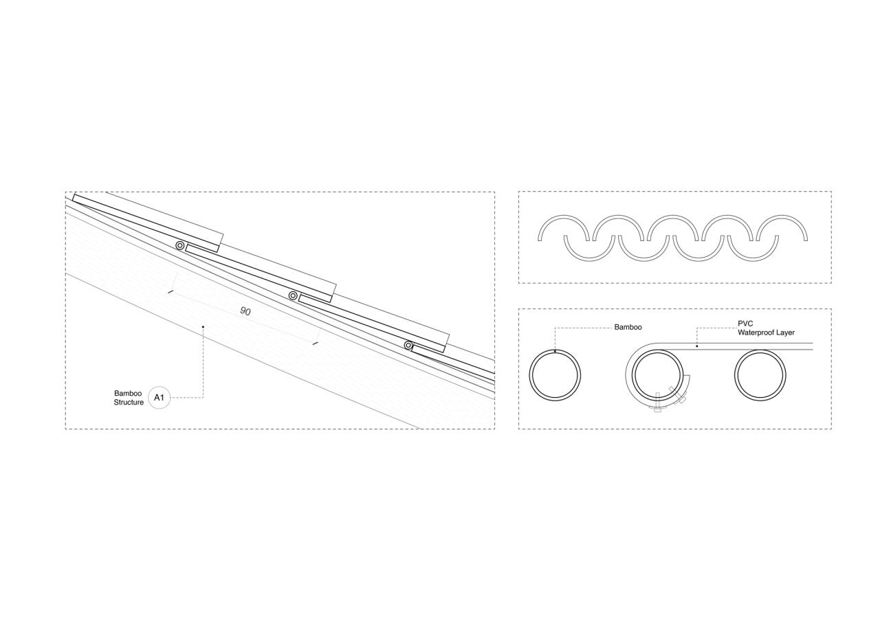 适应性清水山上的茶馆位于海拔 700 米的斜坡边缘。它使用了竹子,是南亚使用了数千年的建筑材料。大多数竹子在一年之内就能长到 6 米高。它细长的树干可以极度弯曲,以抵御台风等强风的袭击。竹子可以弯曲,以减少风的阻力,并将雨水导入山坡。它还可以切成两半,形成天然的屋顶瓦层,为茶馆遮风挡雨。所有连接处都用简单的金属绳绑扎,施工/组装时间不到一个月。