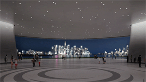 南端云楼可满足发布、展览、会议、交流等不同场景需要。云客厅被四个核心筒抬升至空中,两层通高的环形无肋玻璃最大限度地打开观海界面。当人们置身于此,满眼皆是亘古的自然海湾大背景与深圳朝气蓬勃的城市生活,无限的想象力与创造力在此时被激发。