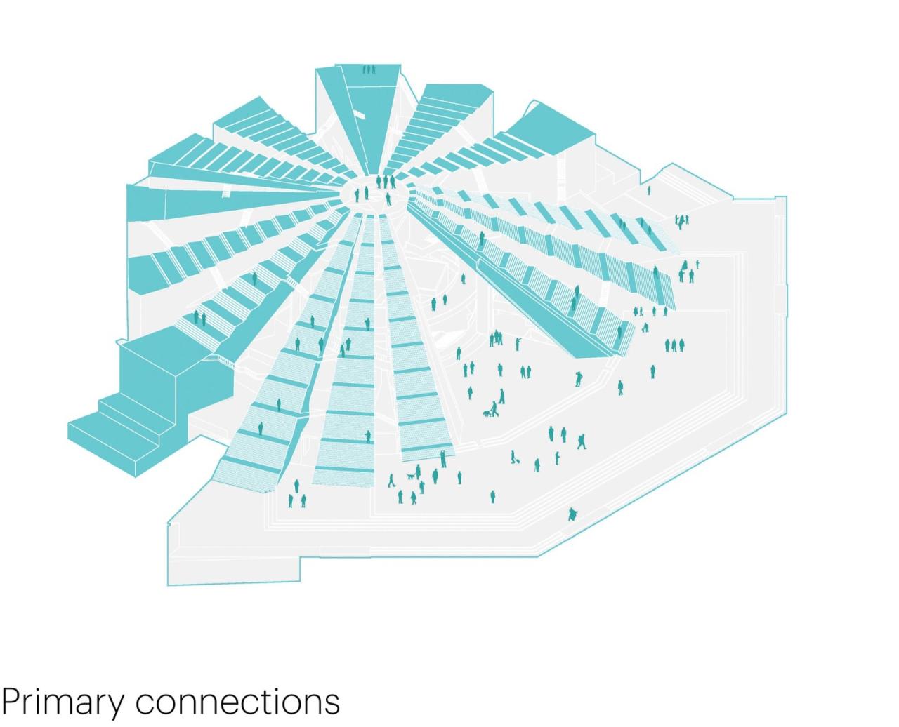 金字塔的改造展示了如何使一座建筑既能适应新时代的要求,又能保留其复杂的历史,并证明了历史性的粗野主义建筑是再利用的理想选择,该项目还实现了联合国提出的一系列可持续发展目标。我们没有浪费地拆除该建筑,而是根据循环经济原则对其坚固的混凝土外壳进行了改造。由于该建筑的大部分区域在一年中的大部分时间都对周围环境开放,因此只有新增的容纳教育项目的箱体需要进行气候控制,从而减少了能源消耗。建筑的新用途推动了社会的可持续发展,教育项目促进了教育事业的发展,为下一代的成功做好了准备。
