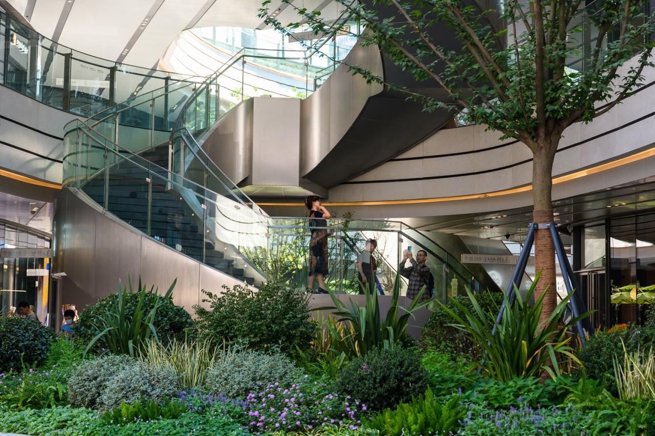 都会中央绿心,自然流入商业空间苏河湾中央公园的设计不仅将首层作为公园呈现,甚至在视觉上削弱了通往地下的入口来更增强其作为公共空间的侧面。设计还将绿意也融入了地下空间,将地上公园的体验也带入地下商业之中。