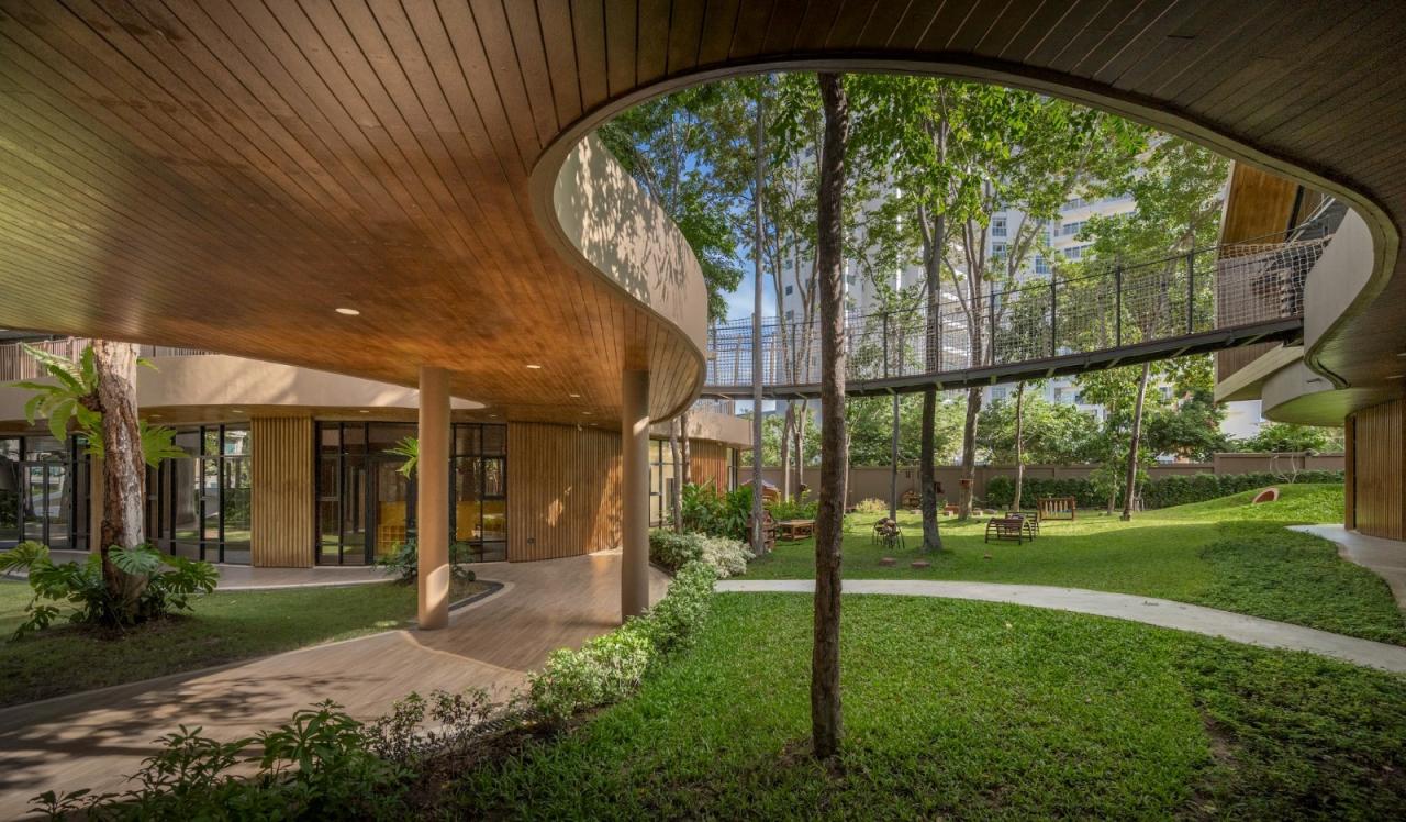 Lovell 国际学校是泰国芭堤雅的一所国际幼儿园,孩子们可以在树丛中玩耍和学习。校址上现有的树木都已成龄,业主和设计师的主要意图是为新学校保留大部分树木。