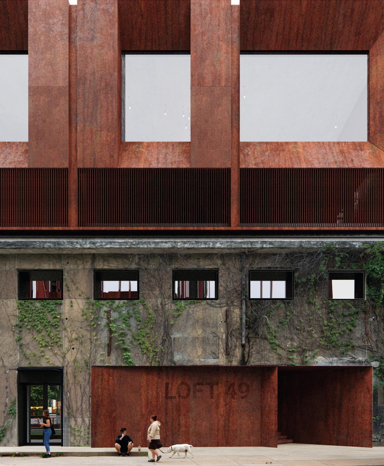 LOFT49于2018年底启动了一系列更新、拆除和提升的准备工作,在一系列风貌和历史专家的研究、甄别的基础上,基地中工业时代特征最完备,建筑留存状态较完好的6号楼和10号楼两栋被完整保留下来,周边被破坏较严重,特征性不强的其余辅助建筑则被整体拆除,为后续进一步发展预留空间。其中,一期更新工程已在用地北侧先行启动,并于2021年建成投用。本次二期的设计工作包含园区主体、两座工业遗存建筑的保护更新和近九万方提量增效的新建建筑。