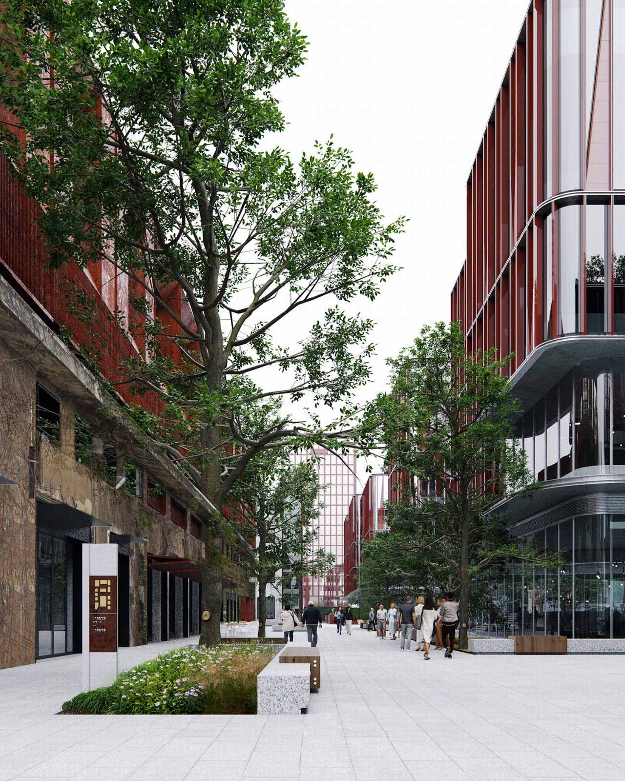 面对棕地改造与规划提升的要求,line+基于自身在城市更新领域的研究,提出“金缮”修复理念,类似于文物修复的金缮技艺,将城市的历史与瑕疵视为有机组成,予以保留,通过异质体系的融入整合和价值赋予,实现历史保护与活化更新的双重目标。
