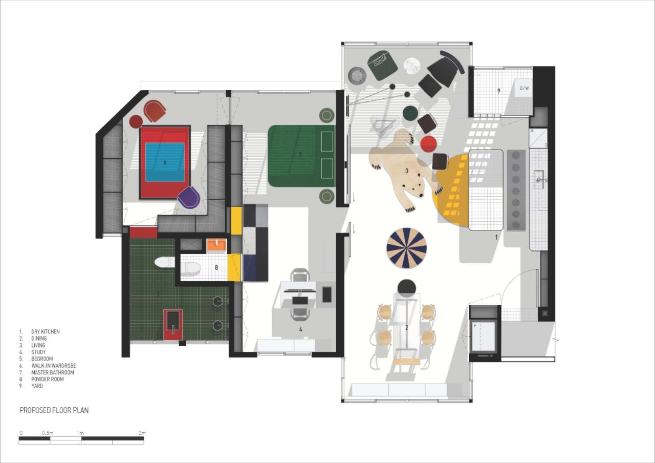 空间规划是根据屋主的要求来塑造的,光线和新加坡的绿色景观应当是充足的。