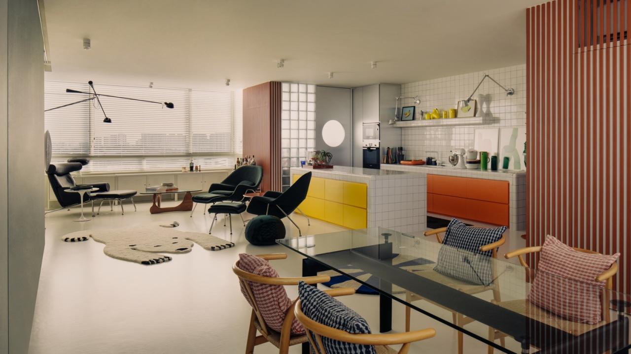 公寓是屋主对色彩和设计的热爱的映射,是艺术和精美物品与家具的明亮画布。