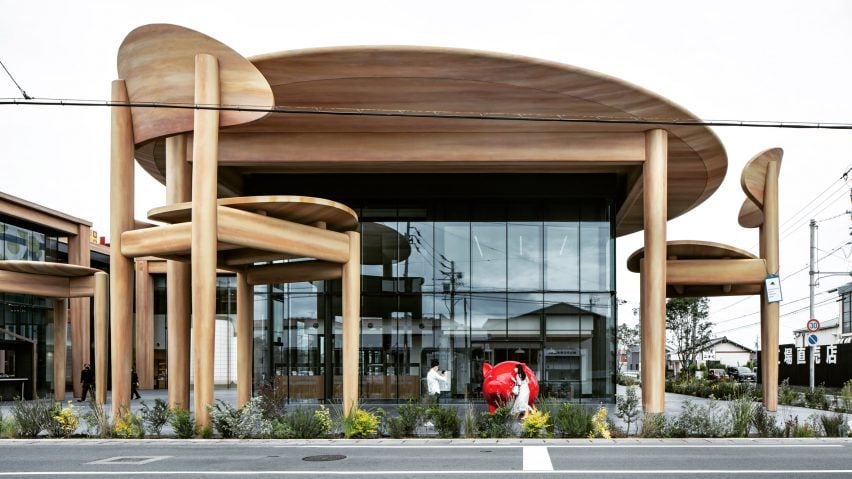 一套巨大的木制桌椅遮蔽着糖果银行(Sweets Bank)的玻璃建筑,糖果银行是日本滨松市糖果公司春华堂(Shunkado)的总部,这个项目由日建设计公司(Nikken Sekkei)设计。