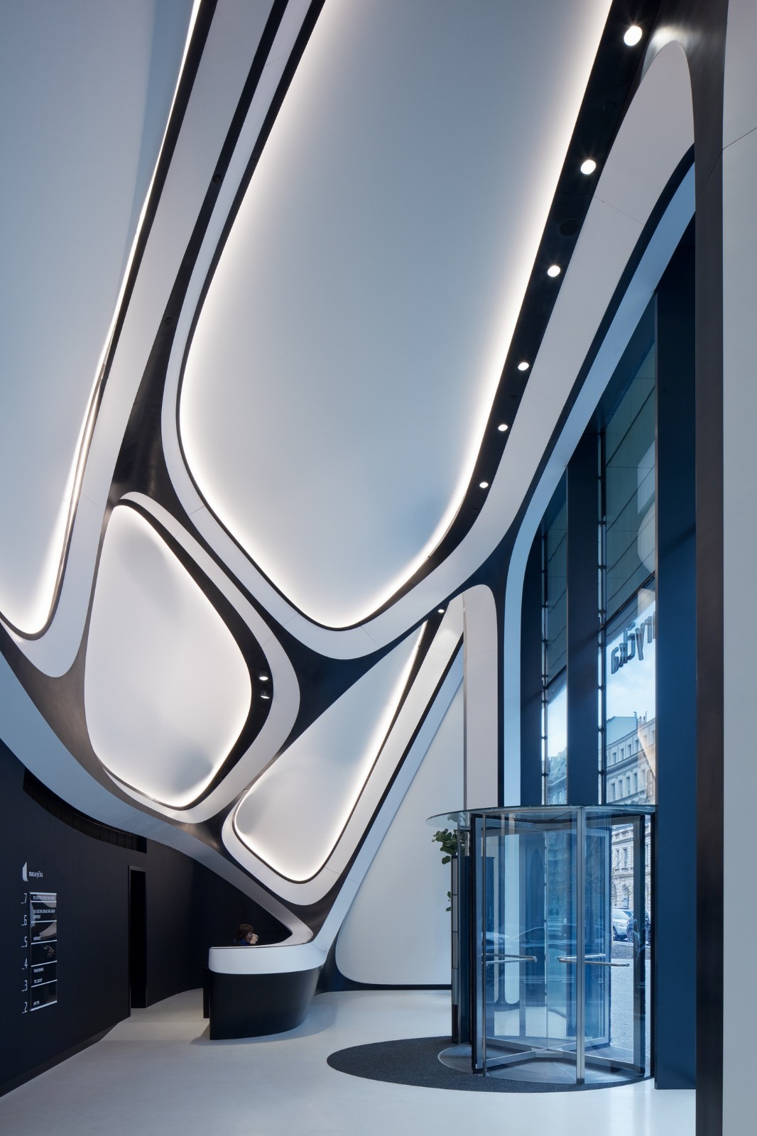 、Masaryčka 位于市中心 Staroměstské 广场以东一公里处,其设计与布拉格老城的建筑和城市规划相呼应,老城被称为“百塔黄金城”。Masaryčka 立面的外部鳍片有助于在夏季遮阳,并将项目的水平构图转变为面向老城尖顶的西立面的垂直构图。