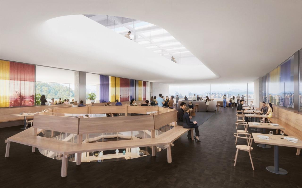 位于六层的空隙将四面八方的美景尽收眼底,而餐厅则为游客提供了休憩的机会。长长的中庭还可以与上面的艺术保护工作室形成视觉连接。该项目还通过围绕五个关键影响领域的战略,努力实现碳中和。建筑结构优先采用高再生成分混凝土,限制开窗和精心隔热等被动式策略降低了能耗,而地源热泵则提供了可持续能源。此外,光电元件将产生电力,雨水将被收集起来并在整个建筑中加以利用。