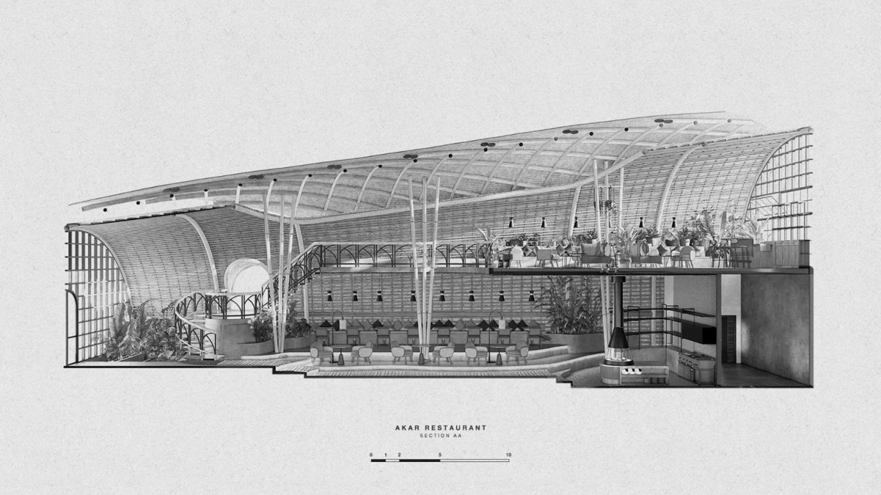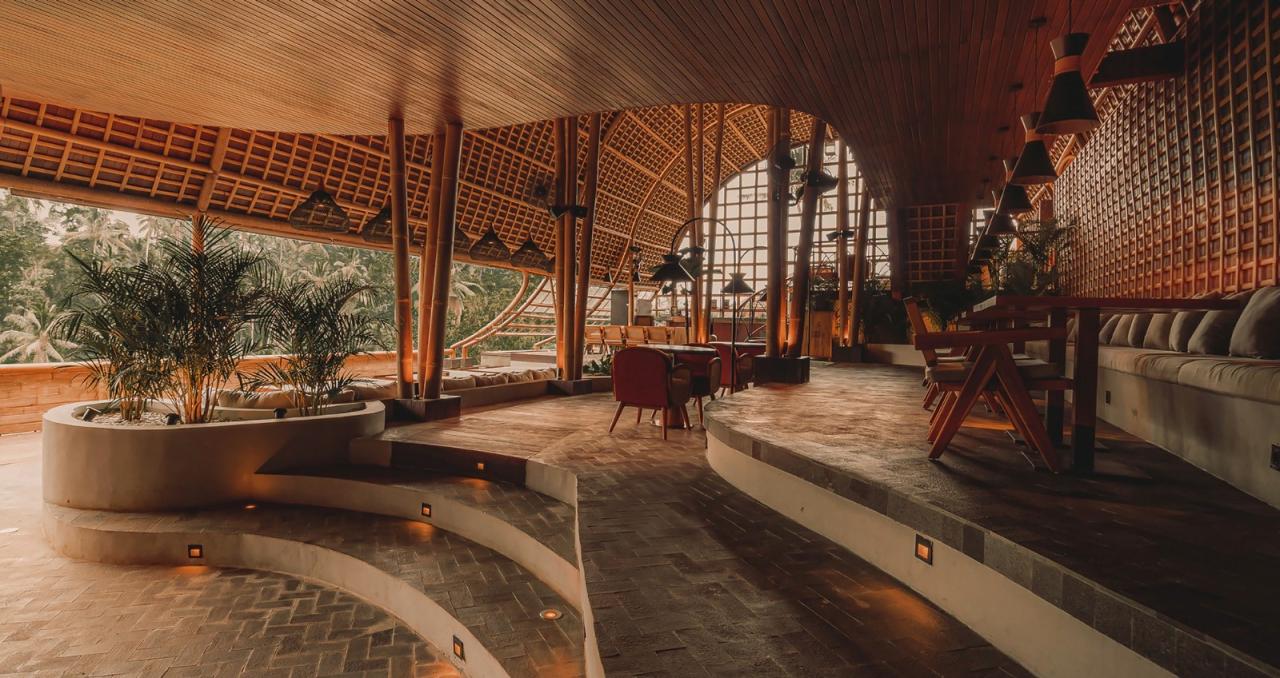 屋顶的设计遵循巴厘岛的传统方法,采用巨大的竹拱,上面覆盖着西拉普木。