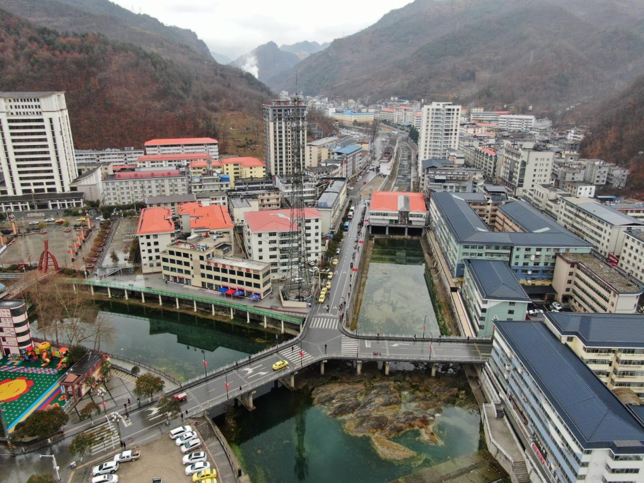 康县地处甘肃省陇南市,甘肃、四川、陕西三省交界地带,人口约为20万人,自古就是连接西南和西北地区的交通要冲,曾是茶马古道的一部分。项目场地位于康县县城核心区域,距离县政府和市政广场约200米,燕子河和三官河两条水道在此处交汇,合流后向南面流淌。河道汇合处有一座三岔桥,当地人称之为“人字桥”。本项目范围北起人民东路,南至人字桥,围绕滨河路商业街展开,主要更新对象包括:人字桥、水上市场、滨河路、信号塔等。