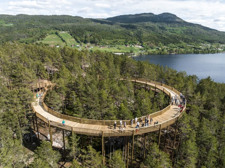 它的木板路外观由当地的松木制成,选择与周围环境融为一体。图-福格德解释说:“它只使用小而直的预制构件,可以很容易地用小型机械和现场手工处理,在建筑过程中保护自然。”他说:“当这些部分连接在一起时,形成了一个有机的形状,围绕着树木和山脉弯曲。”他说:“这个结构与现有的树木融为一体,有时给人的视觉印象是木板路悬浮在森林中。”该结构由EFFEKT与当地承包商Inge amlid合作开发。