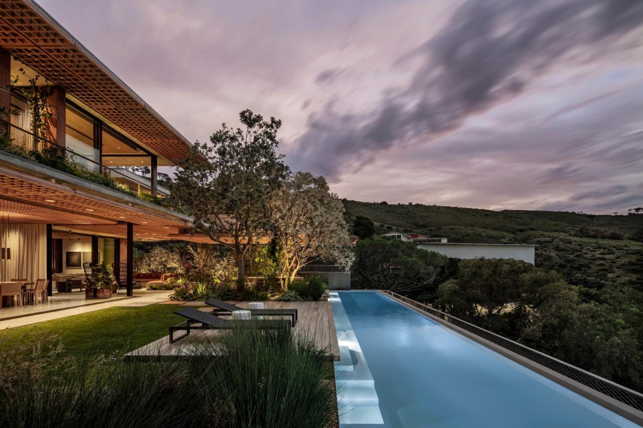 室内装饰为菲利普与材料的接触带来了新的复杂性和趣味性,通常包括广泛的研发、创新和合作。他所选择的室内装饰材料与工匠和手艺人的技能所固有的活遗产进行了深思熟虑的对话。客厅、地板、楼梯和室外铺装广泛使用的抛光聚合物混凝土地板,是用西开普省纳马夸兰地区历史悠久的铜矿的副产品–绿色石骨料制成的。泳池周围和室外用餐区的部分区域使用了罗斯滕堡花岗岩铺路,以及当地砂岩铺路。