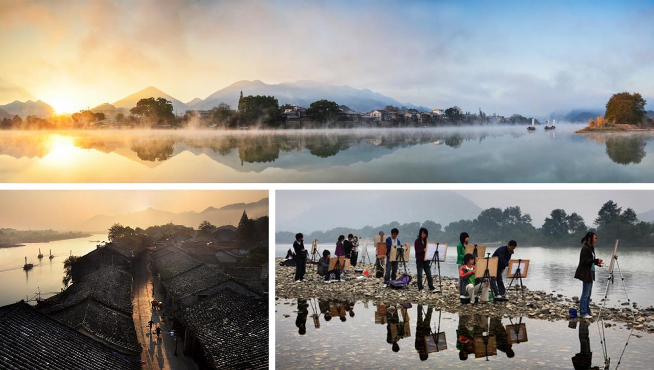 浙江丽水莲都古堰画乡小镇,因1500年历史的世界遗产“通济堰”和“丽水巴比松画派诞生地”而得名。“古堰”“画乡”隔水相望,孕育出了这座古韵诗意与现当代艺术共生的特色小镇,并逐步形成了集艺术画廊、艺术教育、古镇文旅、居民生活于一体的生态系统,2019年被授予“浙江省第三批省级特色小镇”。