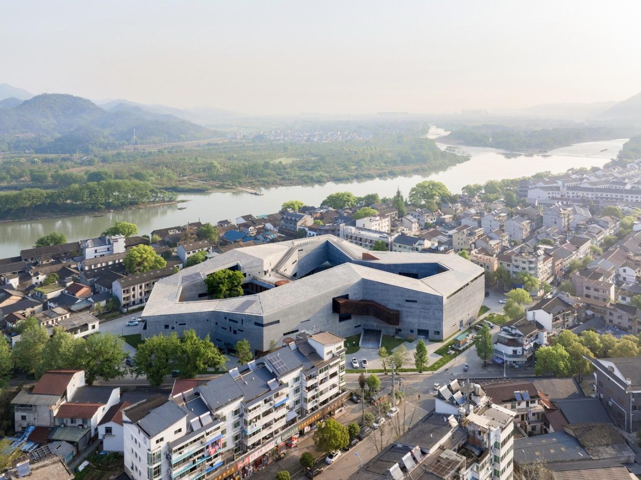 艺术中心坐落于高密度的老居民区中,与保留着传统聚落形态的古街近在咫尺,四周群山环绕,北面紧邻瓯江大溪段,充满原生态的市井烟火气。