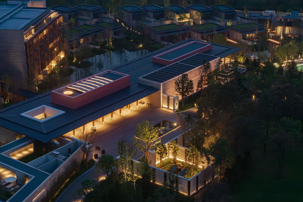 在竖向设计上,以最大限度利用场地地形,减少地貌干扰与山体开挖为原则,采用 “内外平接道路与湖体,建筑内部消化高差” 的方式,将建筑嵌入自然之中,达到与自然高度融合的状态。