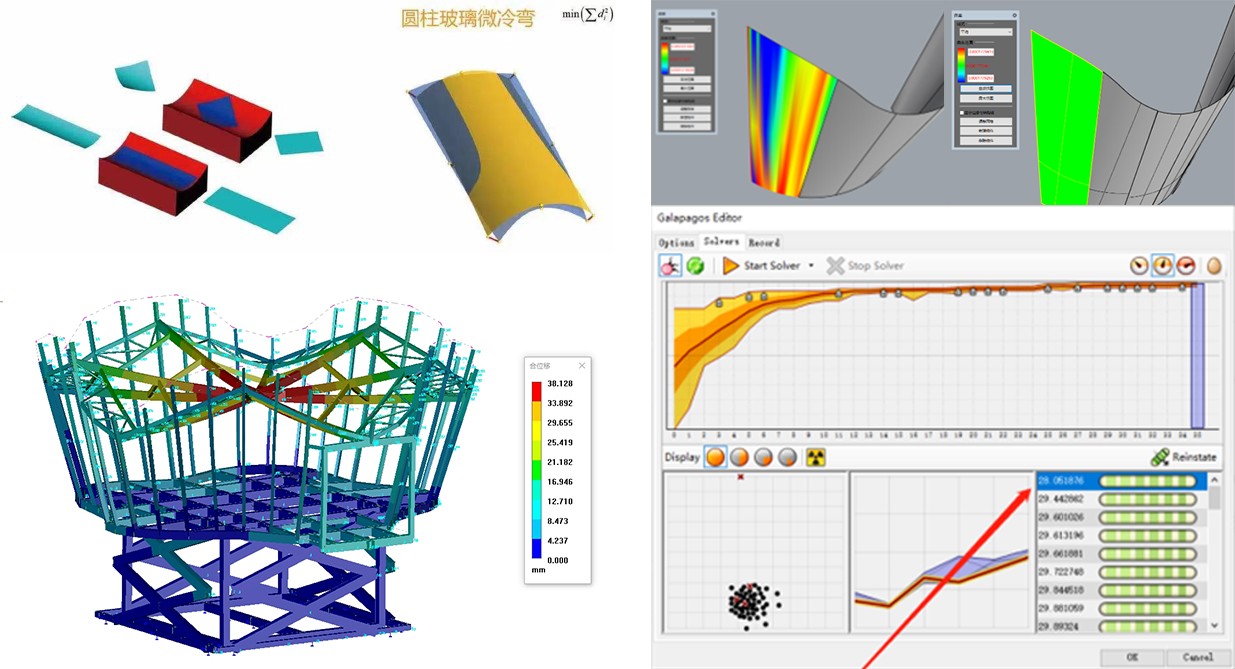 数字技术与优化算法:line+从Rhino到Revit,结合大界自研发工业软件RoBIM深度介入,结合预装配工艺对所有的钢结构进行模型安装仿真,对钢材进行空间切割、开孔、标定装配对接定位,把施工环节的细节纳入整体设计及加工的数据中,减少误差,提高效率。