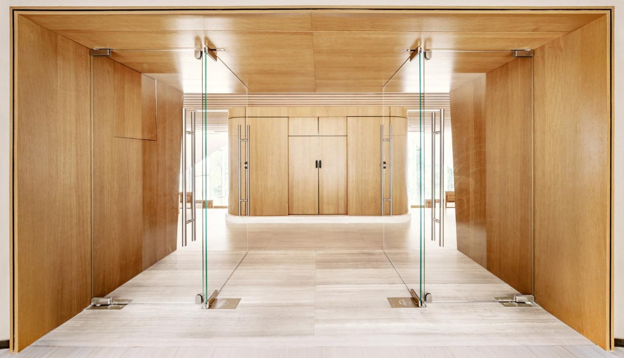 表演性+礼仪。设计引起了身体和精神的参与。就像一次朝圣,信徒们登上梯田参与礼拜。在顶部,他们被天堂所拥抱 – 这是中世纪元素,标志着教堂的庇护所;它为进入方舟的腹部做好了准备。与隐喻所暗示的相反,圣所并不超凡脱俗:进入时,人们完全暴露在山脉之中。创世成为礼仪的一部分,回响着会众在所有分裂之前的原型场景:基督在山上的布道。