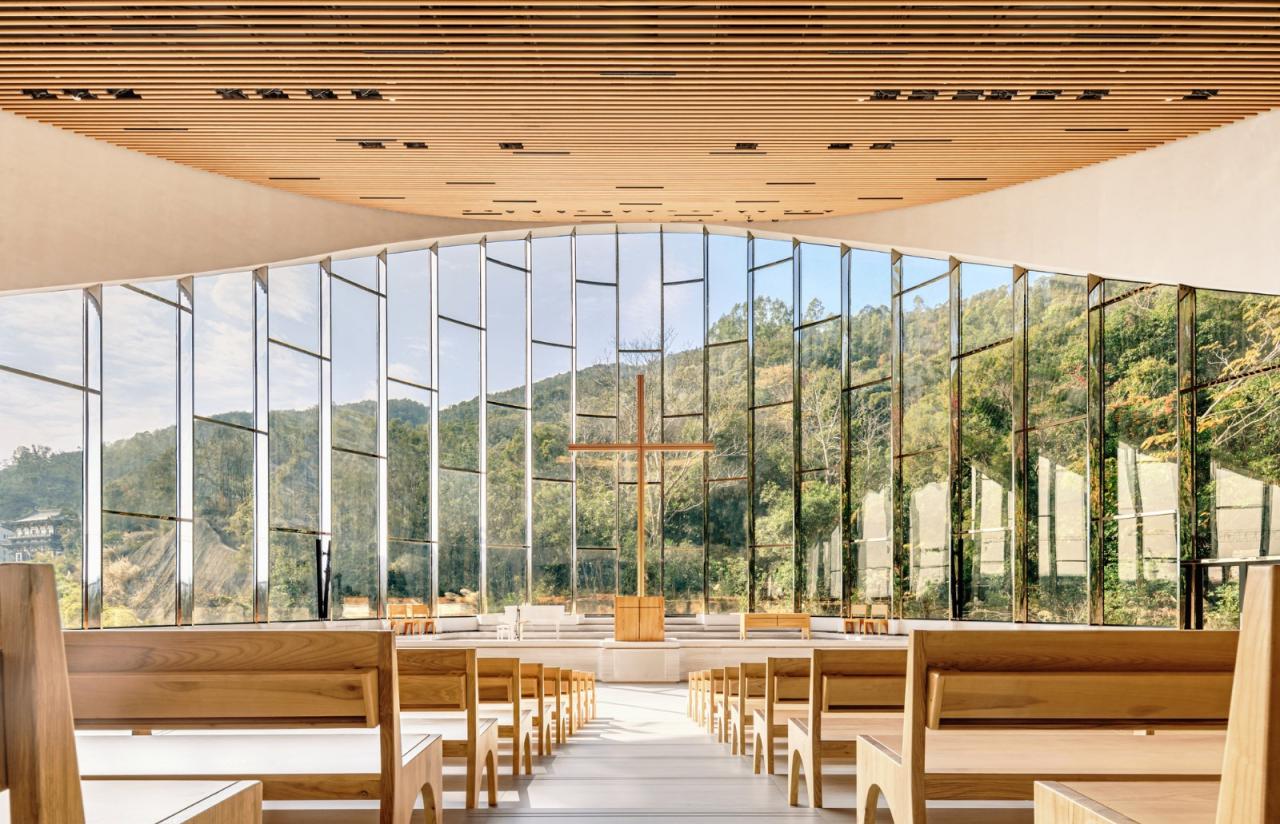 聚龙是泉州市七百万城市外的一个新城镇。自开放以来,人口逐渐增长,吸引了来自全国各地的人们。如今,这里是少数新教徒的家园。多年来,他们在一家商店前聚会。随着服务的拥挤,他们决定为1000名与会者建造一座教堂。坐落在一座绿色山脚下,这个地点可以成为整个城镇的地标。