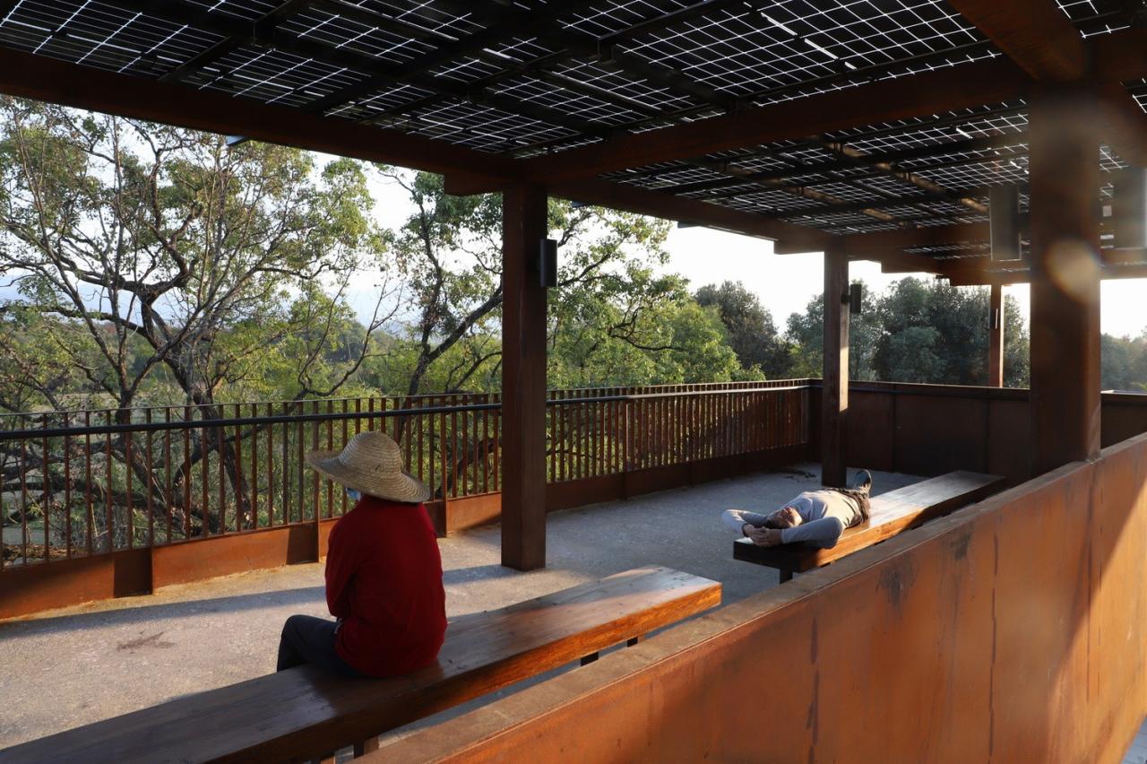 为抵御岭南气候的日晒多雨,瑶客共生广场由园林式的风雨连廊围合成一个大院。连廊缀连起书屋及展厅、农特产品展销商店、自行车驿站、展廊、展亭、节庆舞台、儿童活动场等功能场所,供村民及前来援建的乡建团队使用。在岭南气候下,创造阴影是自然而然的举措。