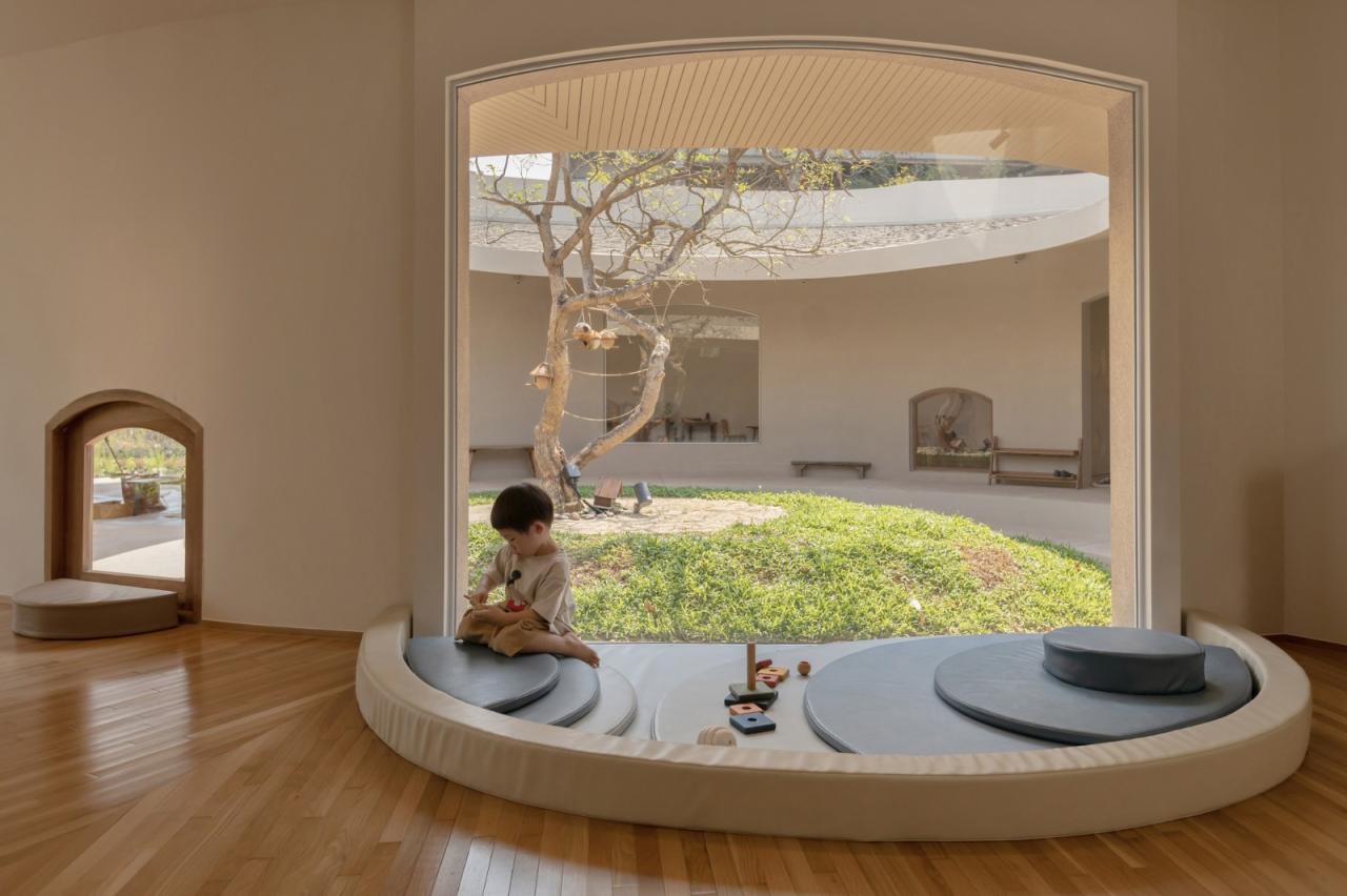 庭院连接了三个主要空间 – 接待区、工作室和游戏室。儿童可以在室内和室外之间自由奔跑,而父母始终可以看到他们,因为所有房间都可以视觉连接。游乐场将成为儿童扩展想象力、探索感官体验、通过游戏学习的场所。