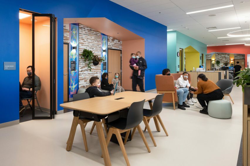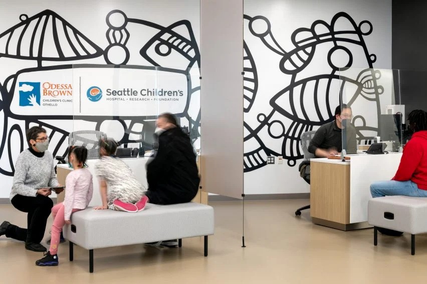 NBBJ 工作室说:“传统的设计过程并不统一,它并不特别适合弱势社区,”NBBJ 工作室向包括患者、家长、医疗从业人员、托儿服务提供者和其他人在内的一系列利益相关者征求了广泛的意见。这些意见直接塑造了空间的设计。