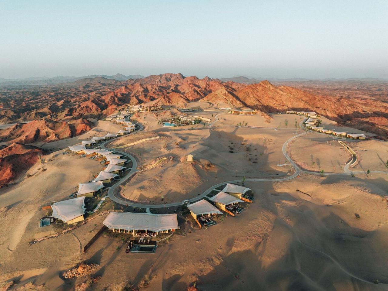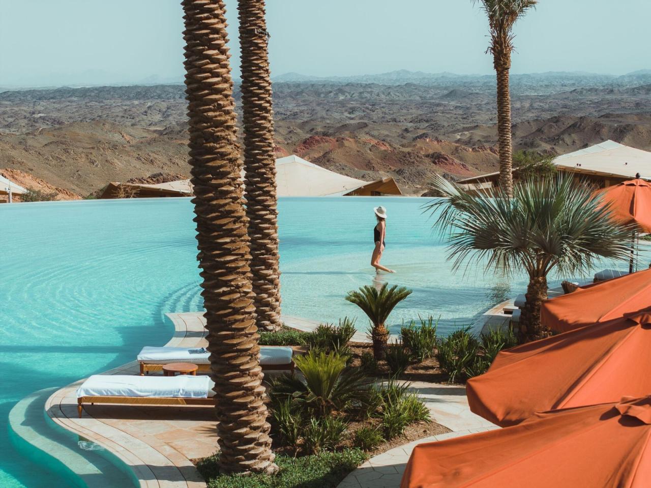 坐落在壮观的环境中,沙丘与山脉相接,该度假胜地的入口以独特的花形遮篷为标志,庇护着一个郁郁葱葱的绿洲。遮篷种植了当地的植物物种,自然冷却空间并增强了其环境质量。轻质的绳索覆盖的花瓣容纳了欢迎区和许多其他设施,周围环绕着山脉和沙漠的全景。豪华的酒店客房位于令人叹为观止的山谷附近,开阔的视野让人尽享山脉美景。