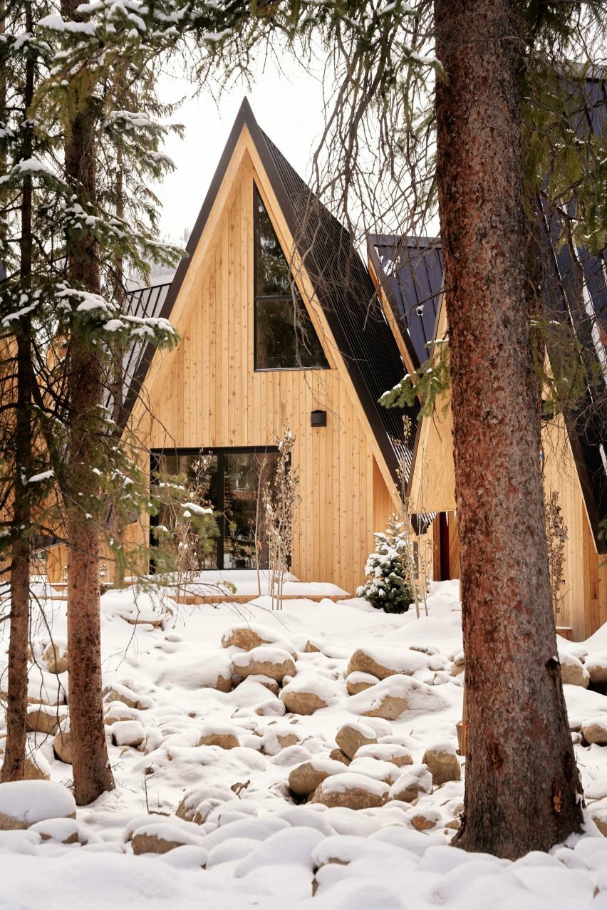 天空实验室建筑工作室(Skylab )在科罗拉多州冬季公园创建了一套预制A形框架小屋,用现代实践重新诠释了传统的滑雪小屋。