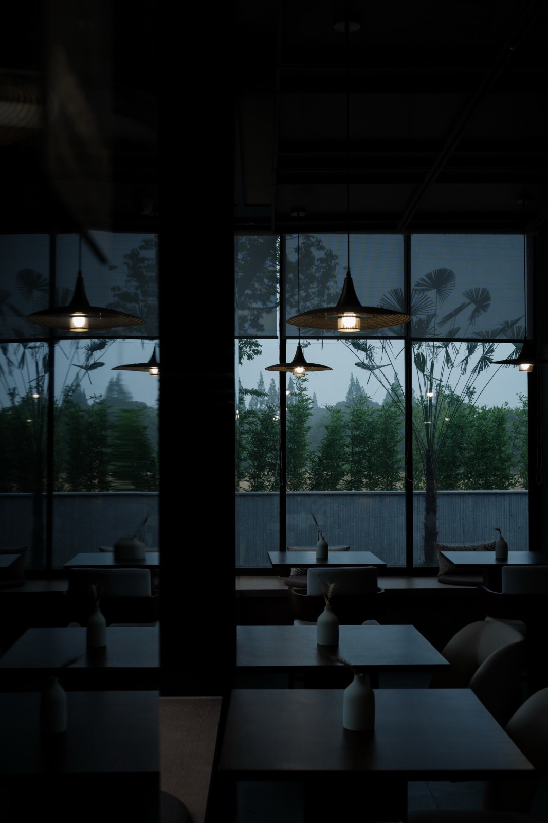 玻璃不仅作为功能性的划分,更成为了营造氛围的艺术品,它引领我们穿梭于虚实相生的餐厅,每一步都踏着光影的旋律,探寻着未知的惊喜。以一抹朦胧的雅致,将尘世的喧嚣隔绝于外,守护着一方用餐的静谧净土。
