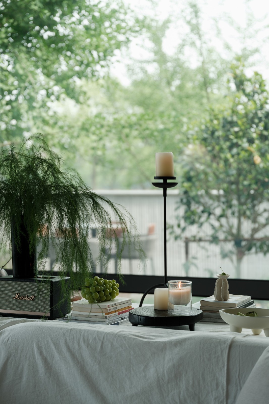 白色的窗帘落下成为屏障,似自然的轻纱,让外界的绿意与光影得以温柔渗透,斑驳陆离地洒落室内,为空间披上一层自然与温馨的华服,让人置身于一个相对私密又不失通透的空间。