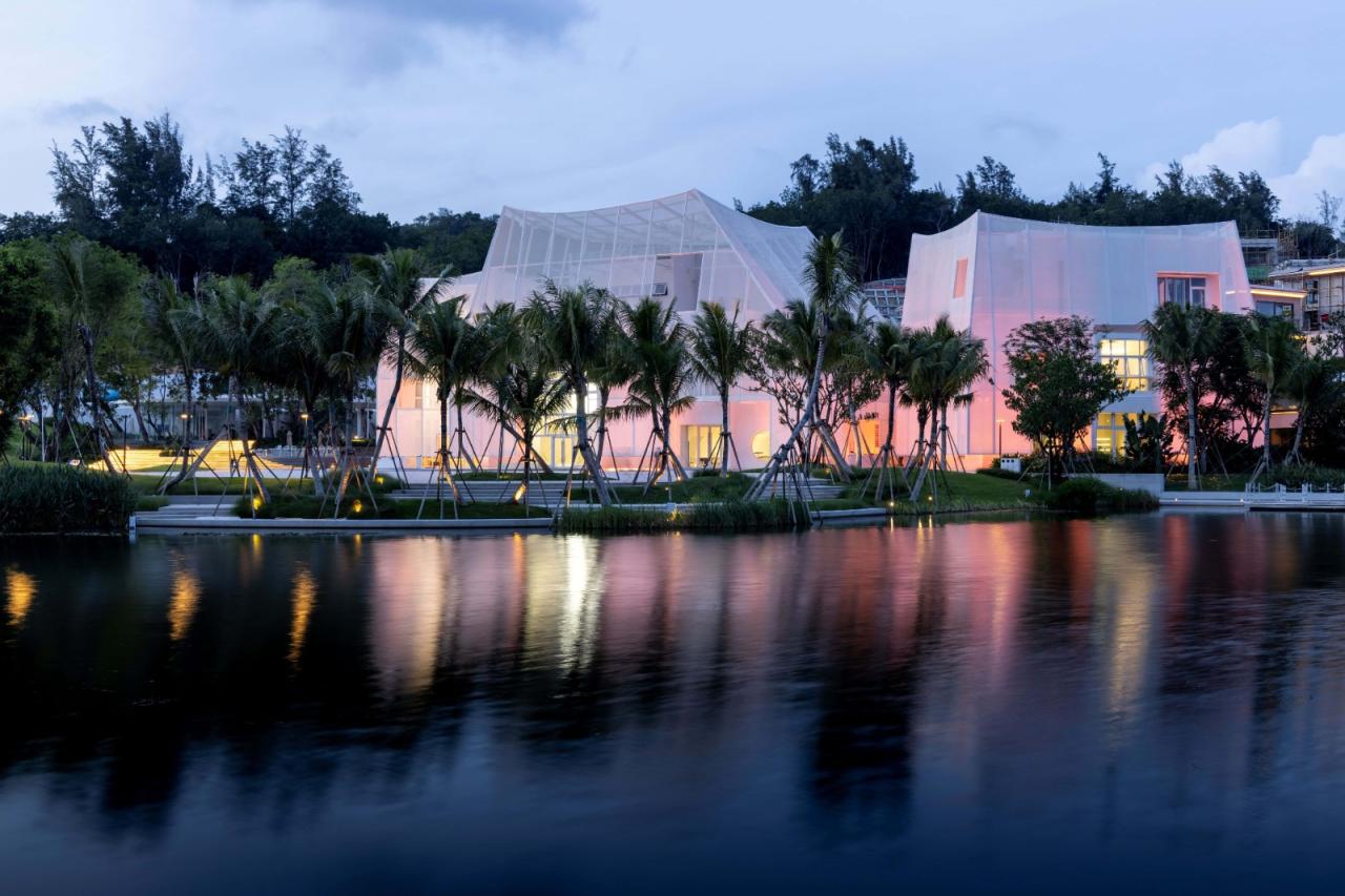 2024年,Wutopia Lab 设计的玉山岚峰:由三种穿孔率组合的半透明白色法拉利膜包裹的正大太阳河咖啡小镇艺术中心在海南万宁落成。在印尼归国华侨开拓的咖啡种植园上的艺术中心,以日夜交替的戏剧性视觉表达,成为当地一个象征奇迹和希望的文化地标。
