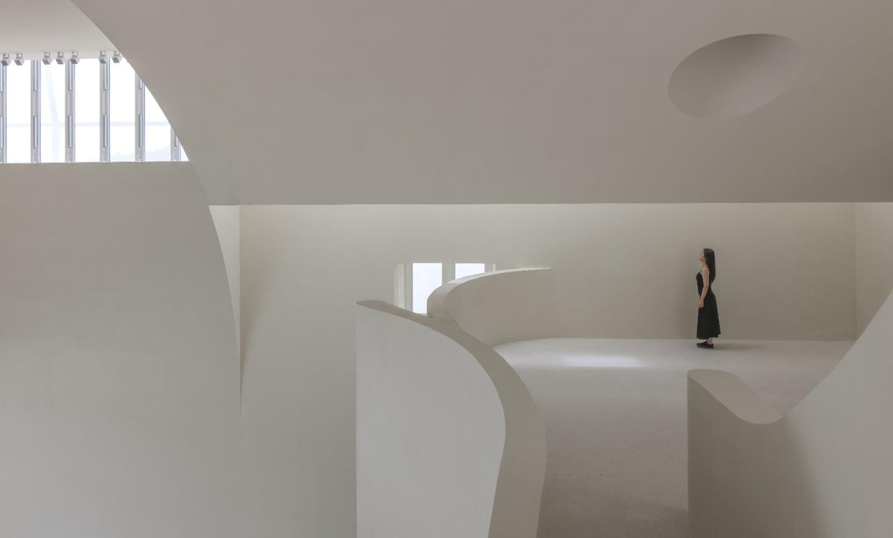 不过在主山的大厅里,最后会有个饱和度极高的灯光设计。在蓝色背景下,红日照耀,这个时候,是罗斯科的复活,这个时候,就在外面看上去变化多端的物质性背后,一个不同于纯净白色的神圣性即时诞生。