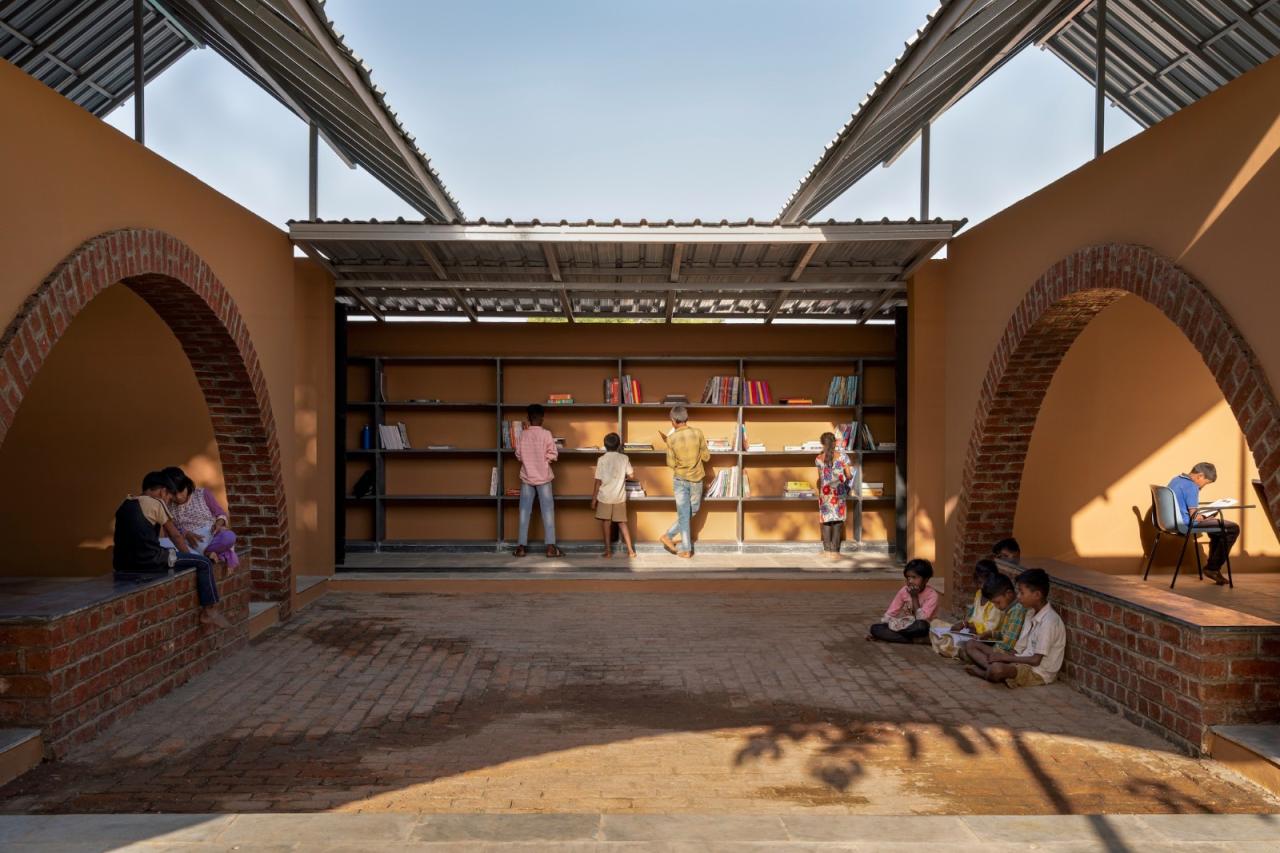屋顶采用波纹金属板制成,地板采用当地可用的石材铺设。设计团队通过围绕中央庭院的凉亭空间组织以及精心设计的开口以优化光线、通风和参与性互动,为使用者提供了一个宁静的,包容的充满趣味性的阅读空间。