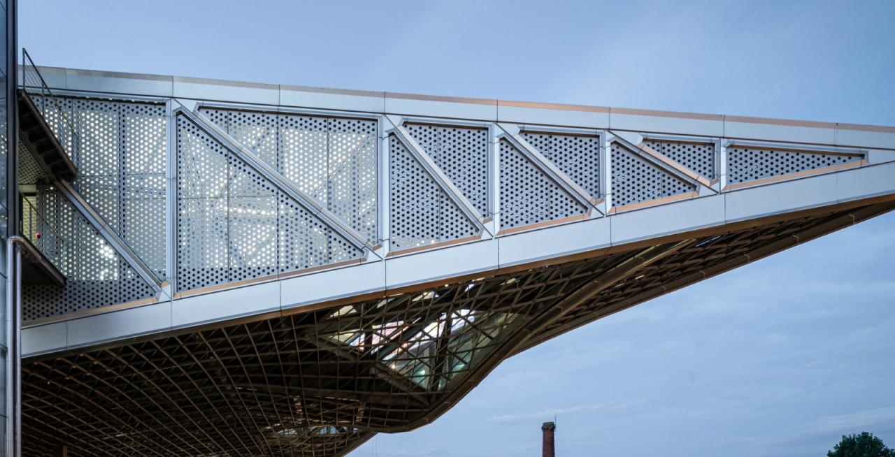 为了搭载这些设备,我们量身定制柱跨模数,避让穿插管线,确保空间满足工艺之需。这对建筑—结构—设备三者的协同统一提出了很高的要求,是在与中元团队紧密协作和技术支持之下才得以实现的。我们建立了参数模型,以便实时反应建筑—结构—设备的调整对整体效果的影响。除了数字模拟,甚至进行了实测风洞实验。