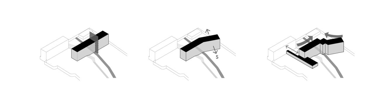 尊重原址环境校舍的建筑形式与现场建构及校园中的自然地理结合,形成了一系列庭院空间,并利用场地的高差创造有盖操场和图书馆,减少了挖掘工程,同时为学生提供了具有特征的活动区域。