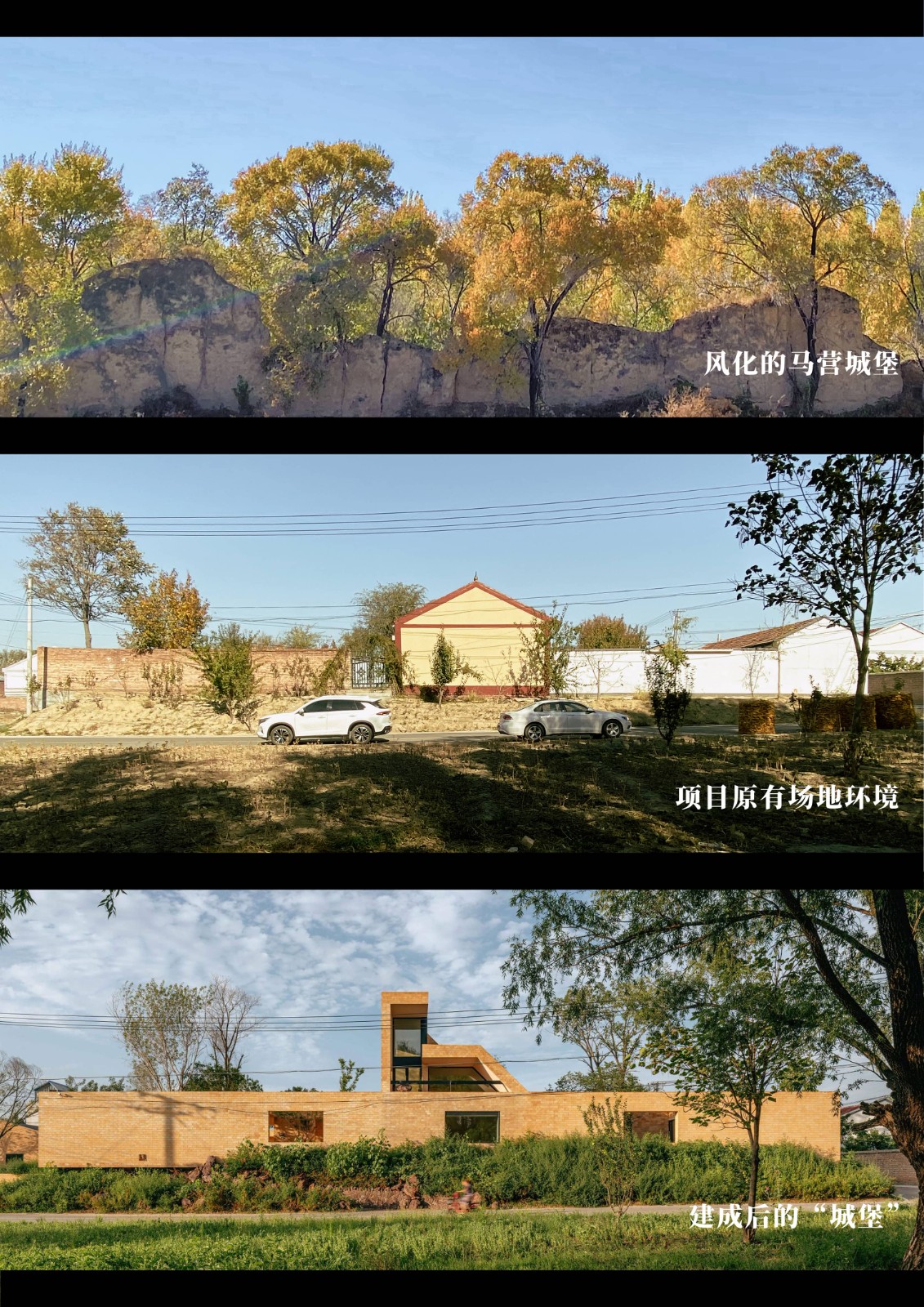 马营村在北京市延庆区,因马营城堡而得名。马营城堡始建于明朝嘉靖年间,总体呈长方形,城墙为夯土结构,曾为延庆至榆林堡之间榆林道沿线重要的军事城堡和暖铺驿站。如今城堡的人工痕迹被往日的风抹得失去了棱角,难以辨别原本的方正模样,夯土城墙风化成自然环境的一部分,与在此地生长了七十多年的崖头柳林相依相偎。