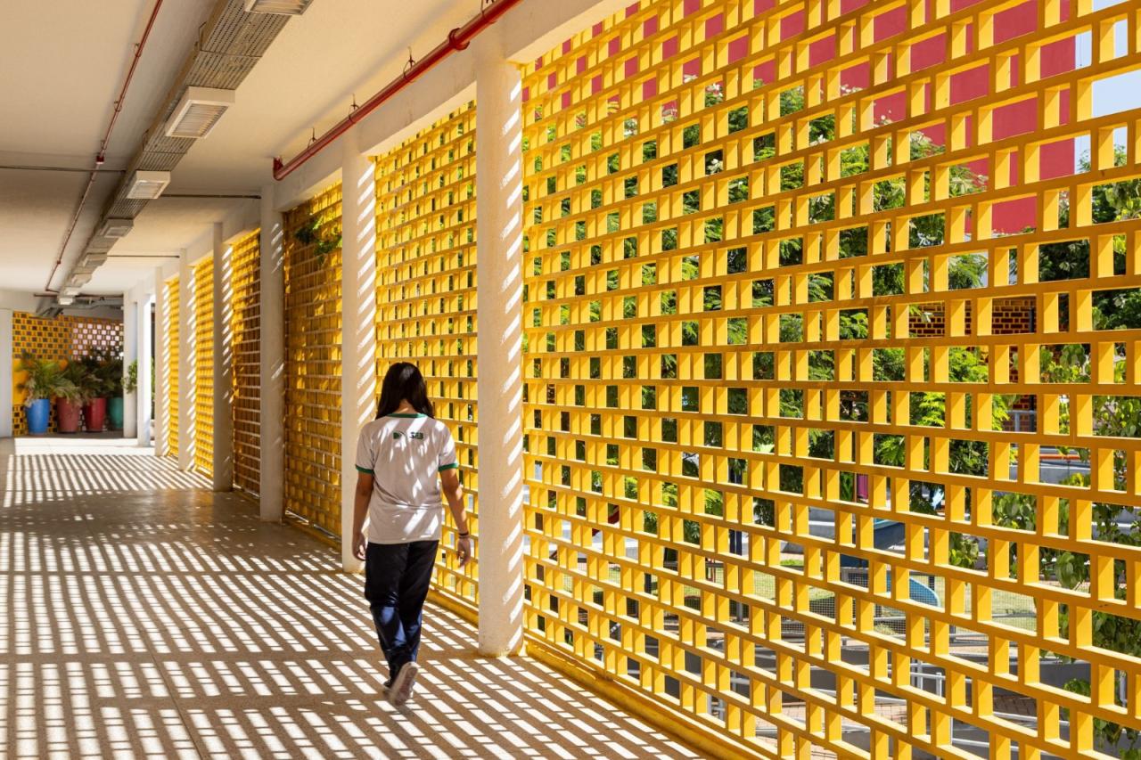 学校位于塞阿拉州南部的若阿金杜诺尔特市。这是一所从幼儿园到高中都涵盖的学校。除了行政和服务部门外,该项目还包括教室、图书馆、实验室、多功能室、餐厅、球场、礼堂和公共区域。这座 3700 平方米的建筑位于一个角落地块上,其大面积朝北和朝西。施工是在现场外围进行的,从而保护了西侧立面,并为学校内部提供了阴凉处,那里是所有学生的娱乐和休闲场所。教室面向东和北,而运动场面向西,但被一个金属屋顶保护着。