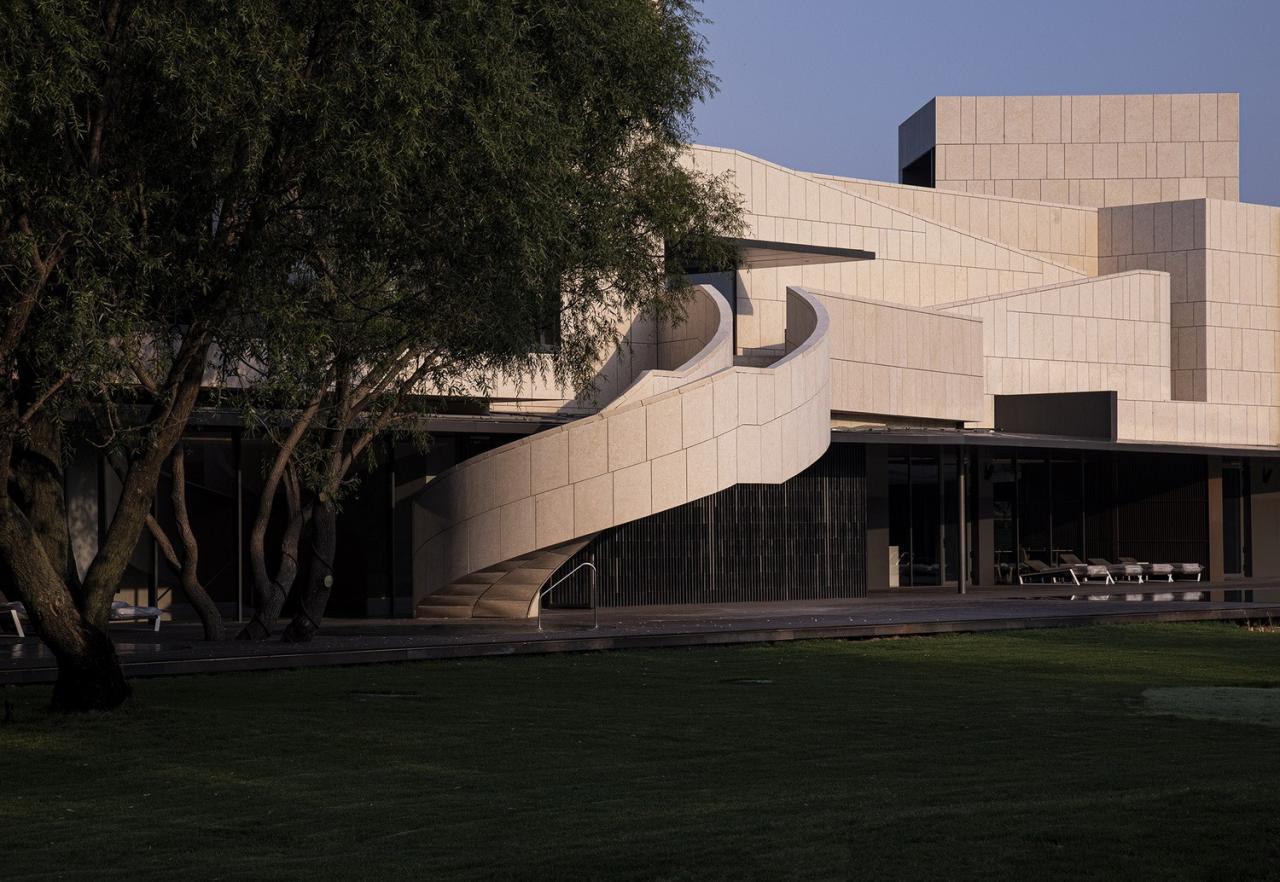 建筑外墙被设计成米黄色石材,作为北方,米黄色的石头更容易让人在寒冷的冬季联想到一丝暖意,这样的选择同时也是业主的美好期待,这也正反映了北方人和这片土地的共同性格,坚实的外墙,厚重的体量。