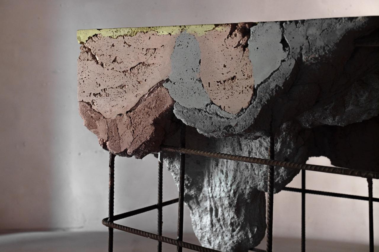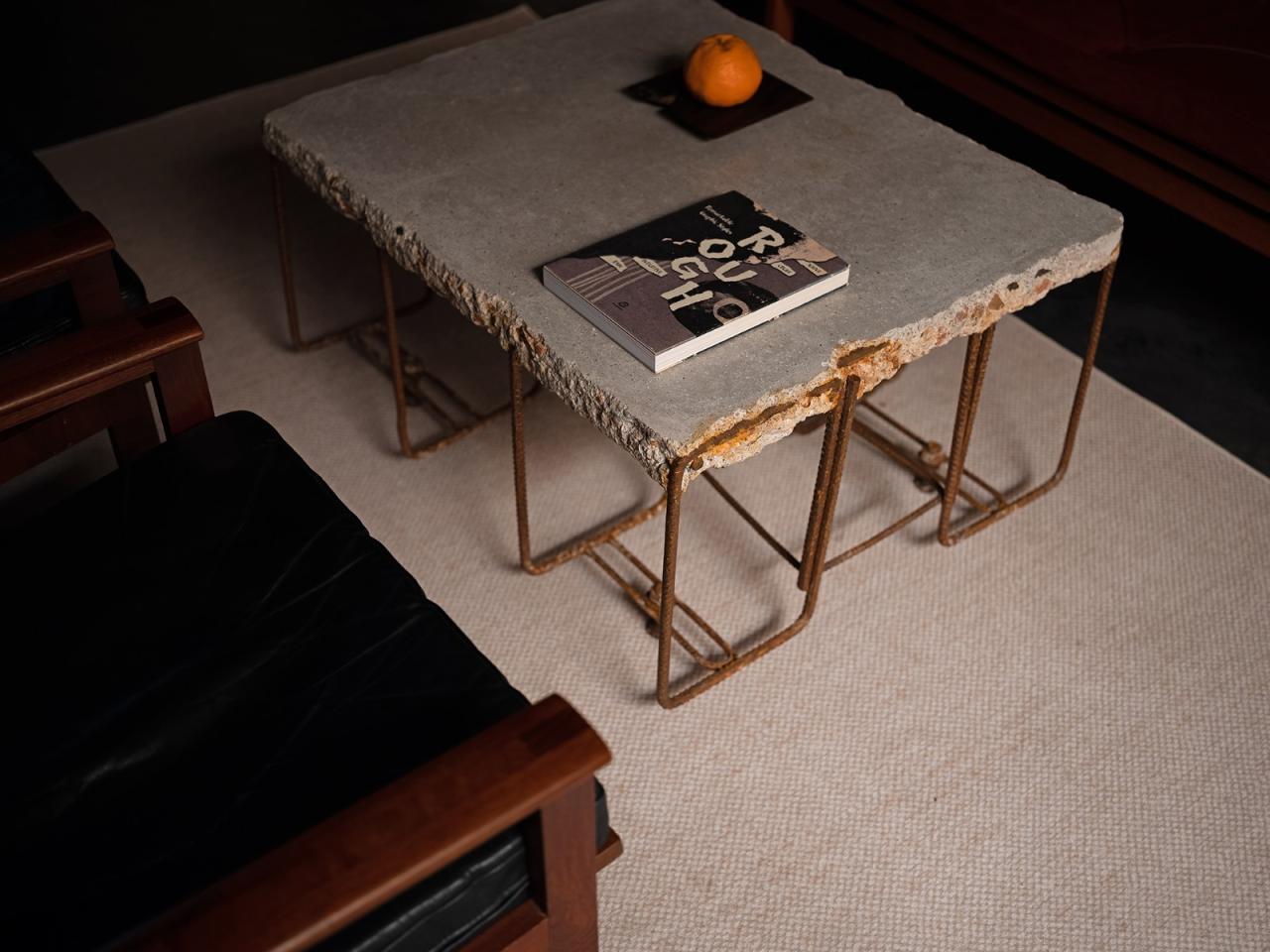 同时友人还做一些家具表面处理,把砼夯、液态金属、洗石等肌理运用到表面,从建筑表面延伸到具体器物的表面。