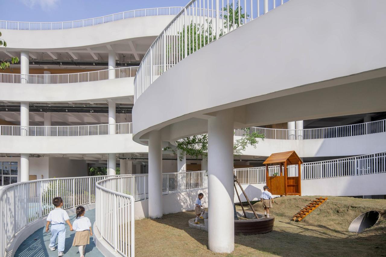 ▲沿一层环廊运动中的小朋友 © DONG建筑影像