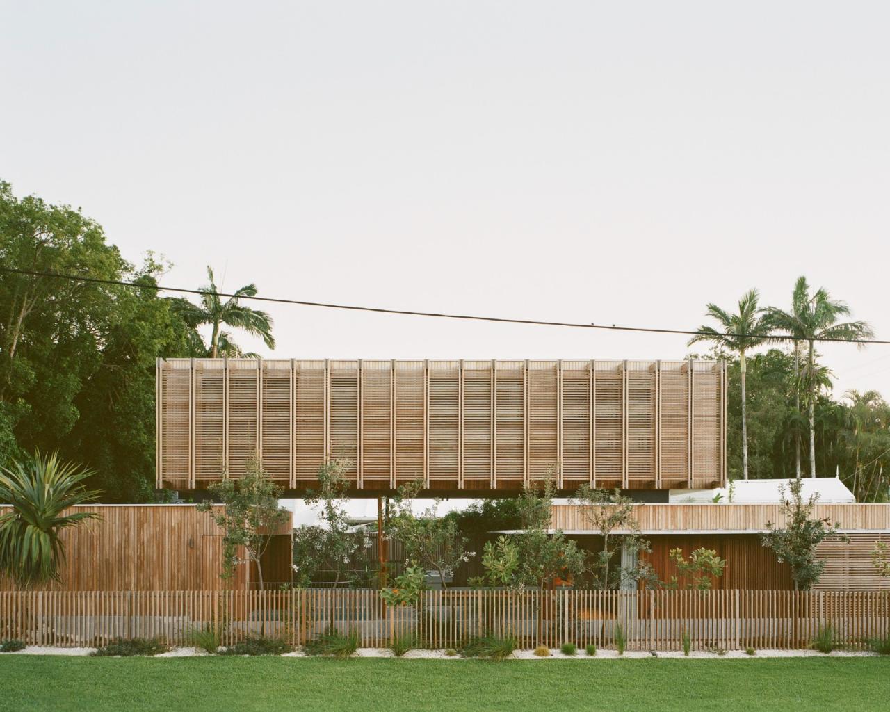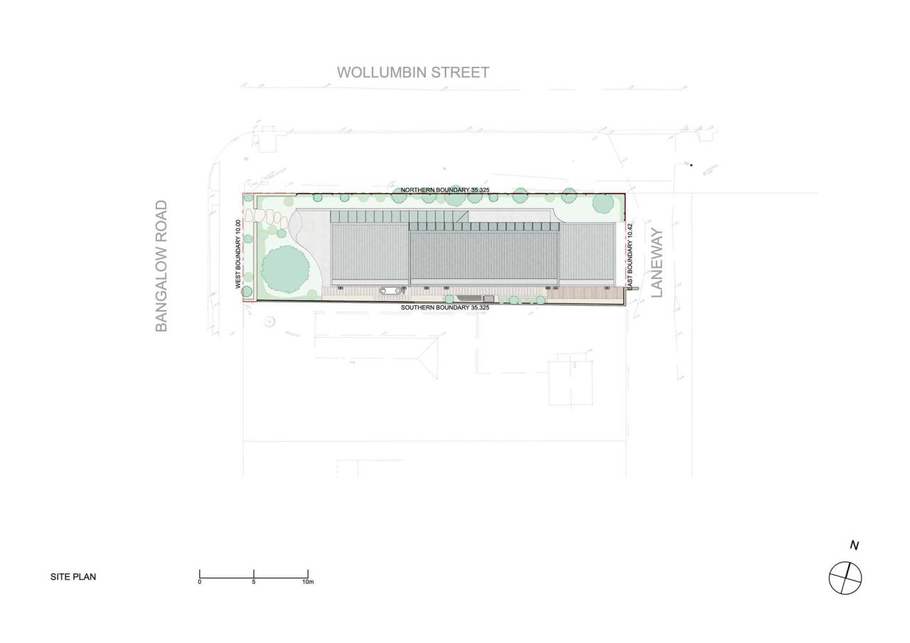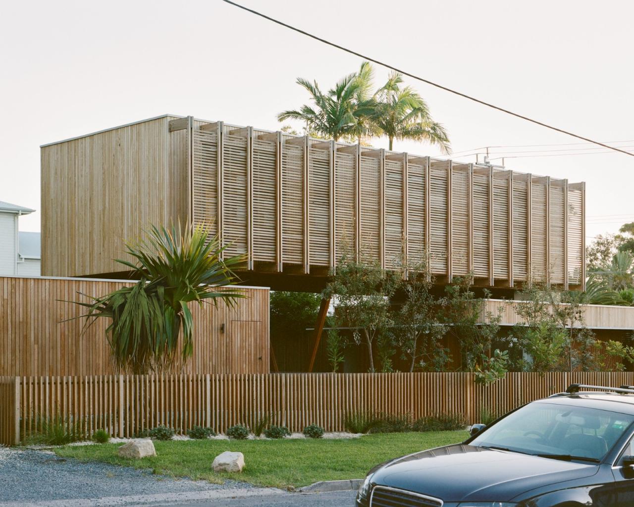 位于拜伦湾一个狭窄的360平方米角落地块上,班加洛路住宅巧妙地应对场地限制,打造了一个高效的小型家庭住宅。面对场地有限的尺寸,设计采用了升高的布局,以满足三卧室住宅的内部面积需求。住宅由三个矩形体量构成,每个体量承担不同的功能需求。