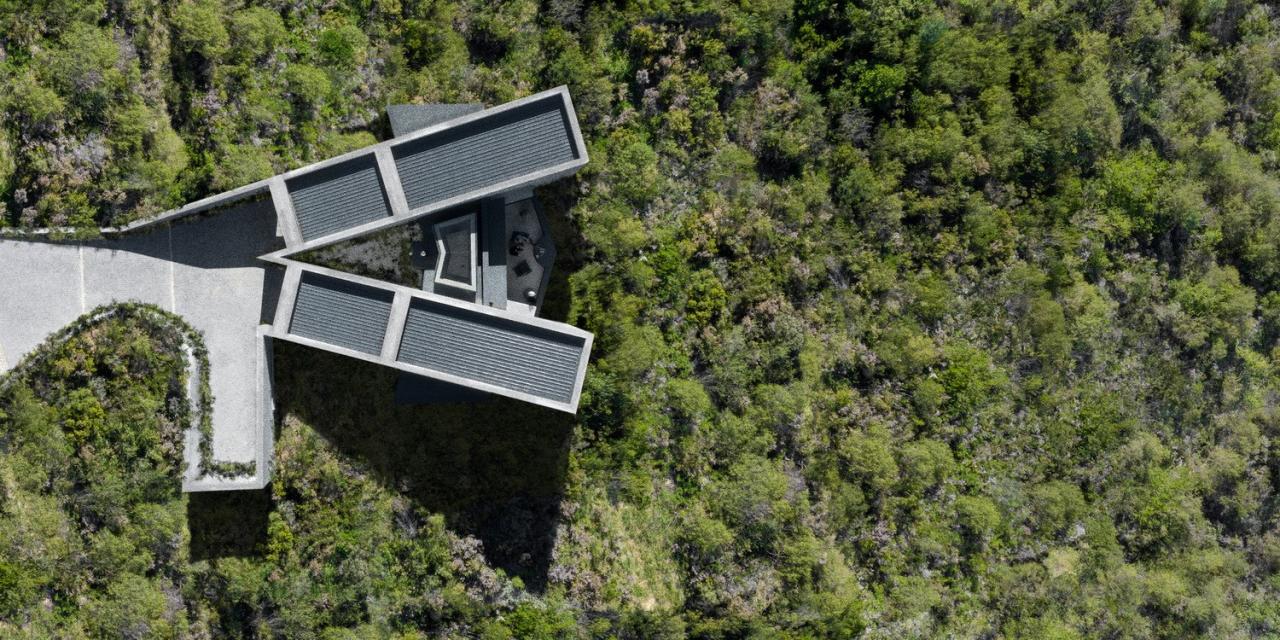 设计理念—— 两座小房子上下叠放:上面是主宅,下面是未来的公寓。这两个单元都面向北方视野开放,同时避开南风。设计使其低矮地融入景观之中,以避免阻挡行人望向奥特尼夸山脉的视线,同时为业主保持绝对的私密性。