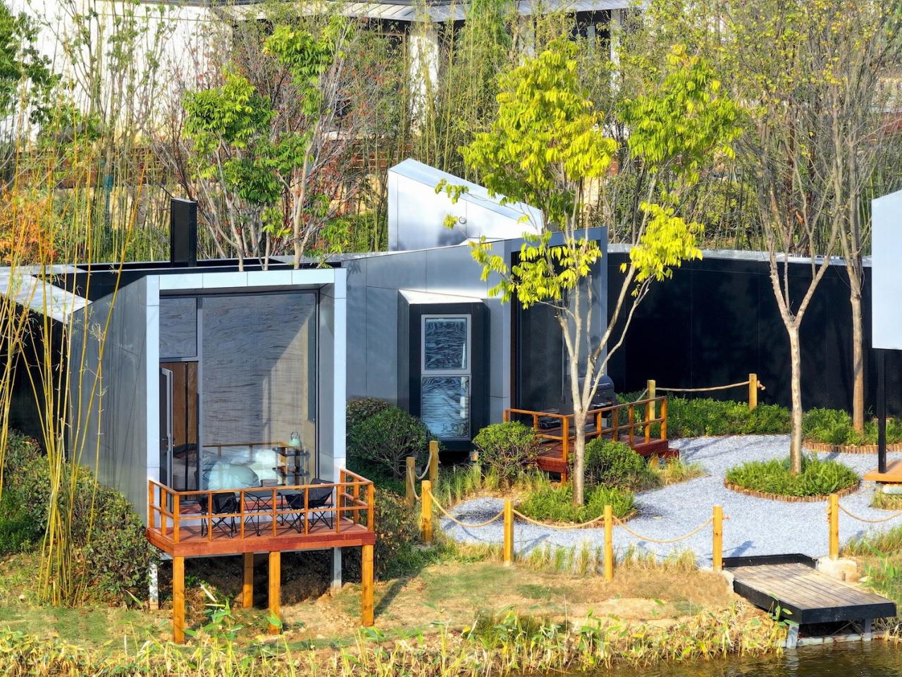 自然建造建筑的整体采用胶合木结构,通过数字化技术对每一根异形构件和节点进行设计定制,实现了百分之百的全装配建造。关于居住,一定没有标准答案,每个人都希望居所能够传达自身对于生活的理解,于是有了“在家里迷一次路”这样的设定。个个世界延续了一直以来的自然建造理念,我们保留场地内的每一棵树和竹子,延续了原有林地和小径肌理,房子完全架空于地面,全部的建筑均为自主研发的装配式木结构,由团队和用户一起建造完成。自然的建筑,可以像乐高一样被建造。小小的房子,像积木一样被放置在森林里。我们坚持原始野生的木构技术,亲手烧制外立面的碳化木板。木屋的连接方式全部是小巧的金属构件,可以反复拼装。我们尝试在自然里经营出房子的和环境的精准关系,每个木屋都是架空结构,房子不接触地面,也不设置围墙和人工景观,自然是最好的包裹物。