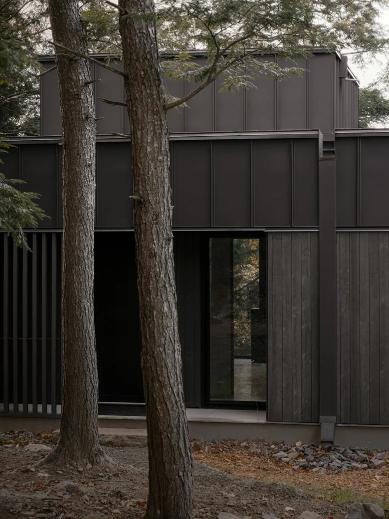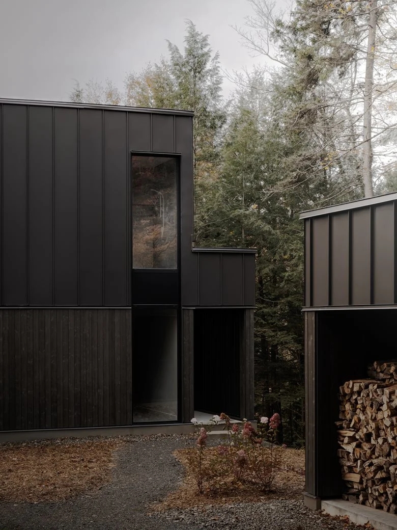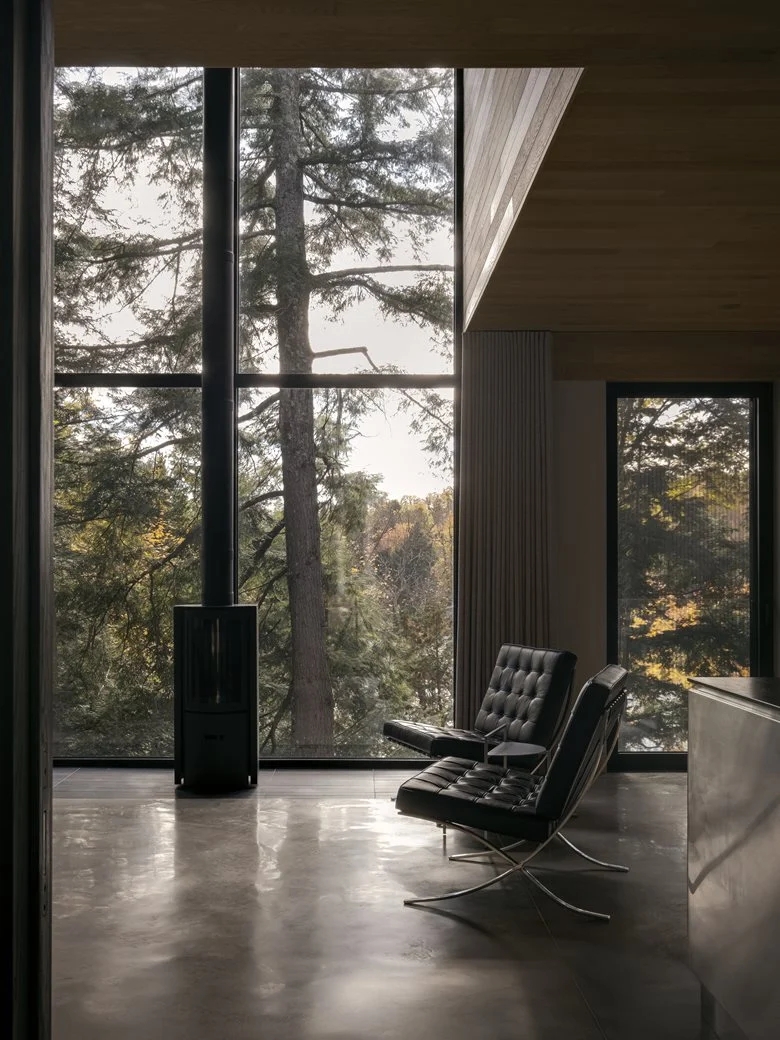 这处非凡场地的主人尚塔尔(Chantal)和雅克(Jacques),希望离开他们在蒙特利尔的城市住宅,寻得一处能沉浸于自然之中的宁静静居之所。他们的愿景是:建造一座当代风格的紧凑型住宅,与周围环境完美融合 —— 既能欣赏到令人叹为观止的美景,又能保有私密的个人空间。