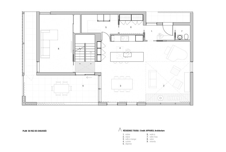 被动式设计策略 —— 包括合理布置窗户以利用自然光线 —— 减少了对供暖和制冷系统的依赖。住宅卓越的隔热性能确保了最佳的能源效率,气密测试结果超过了新气候标准(Novoclimat standards),证明了该项目的高性能。