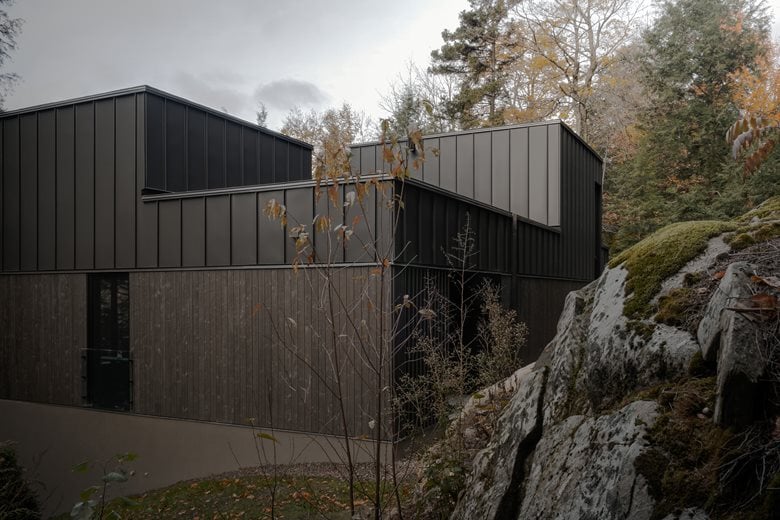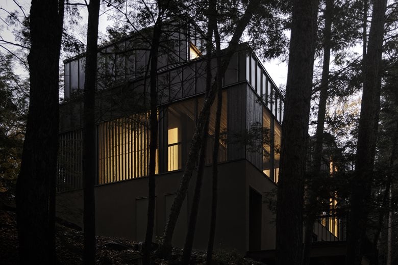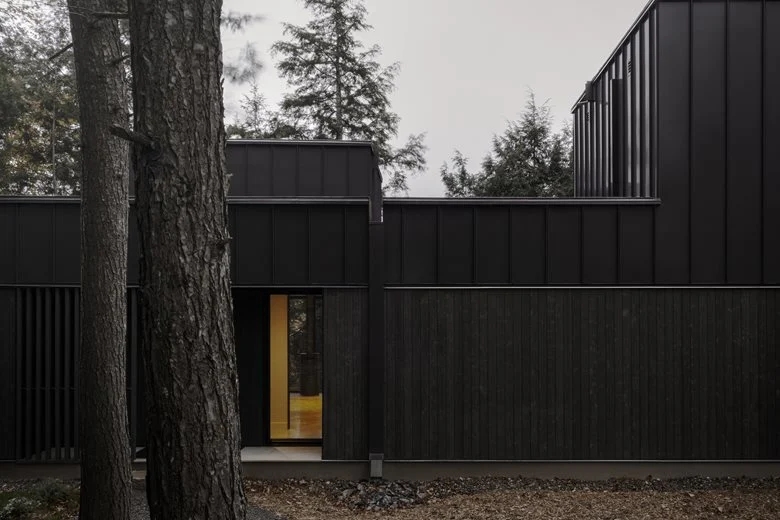 Tsuga 住宅坐落在劳伦琴地区布朗斯堡 – 查塔姆崎岖的森林山坡上,它超越了复杂场地的限制,为人们提供了一种沉浸式的、充满感官体验的居住感受。这座住宅是为一位建筑历史学家及其身为音乐家兼歌手的妻子设计的,每一处空间、材料以及视角都经过精心雕琢,旨在打造一个独特的避风港,既体现出精致感,又深切表达出对这片土地的尊重。