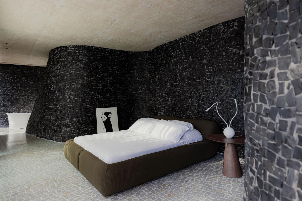 建筑的材质强化了与周边景观的联系。蜿蜒的墙壁覆盖着黑色的石头,与白色的石质地板形成鲜明对比。这座房子既是一个庇护所,也是一种生活体验。单一的材料 —— 石头,定义了它的本质。塞雷马之家代表着时间、河流、山脉和洞穴。最重要的是,它就是诗意的化身。